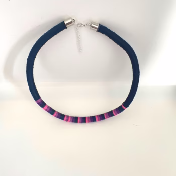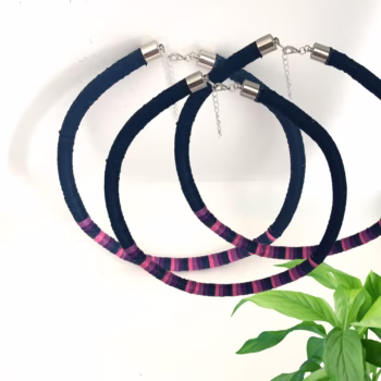Make a bold and eco-conscious statement with the Azure Glow Ethnic Fibre Necklace, a unique blend of artistry and sustainability. Handmade Statement Necklace is meticulously from premium 1mm mercerised cotton cords and an 8mm cotton rope base. This lightweight design combines durability with elegance. The striking interplay of deep blue tones with vibrant purple and pink accents makes this necklace a versatile accessory for any outfit—perfect for adding an ethnic-chic touch to your look.