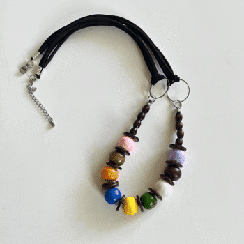 Elevate your accessory game with nature’s finest offerings – our stunning multi-coloured wooden bead cord necklace! Not only will you make an unforgettable fashion statement but also stand as a testament to sustainable living without sacrificing luxury or style.