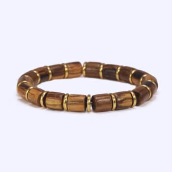 The bracelet makers craft it from genuine natural Nanmu wood beads, known for their rich tones and smooth texture, and pair them with gold-plated stainless steel accents for added durability and elegance.