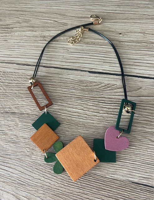 This necklace epitomises class. It’s perfect for eco-conscious consumers who wish to make a bold statement without compromising on their values. The smooth finish and rich tones of the wooden elements add a touch of natural beauty that makes each piece one-of-a-kind.