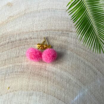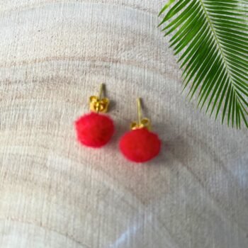 – At this time, we offer the Mini Pom-Pom Stud Earrings in the eight colours shown. If you have specific colour requests, please reach out, and we will do our best to accommodate special orders.