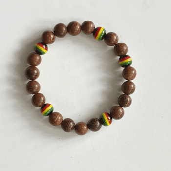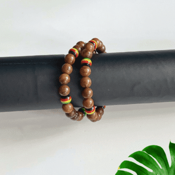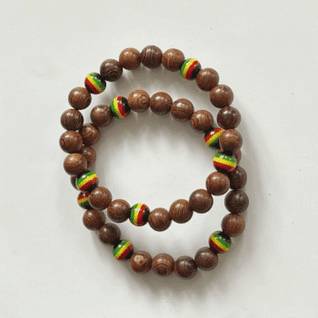 – The bracelet is made with high-quality 10mm wooden beads, featuring a natural striped pattern, and 10mm Ras ta beads that are vibrant and colourful, symbolizing the Rasta culture.