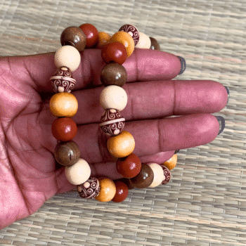 This Ethnic Tribal Beaded Bracelet captures the essence of rich, cultural artistry and timeless appeal, making it an exceptional choice for those who appreciate both style and storytelling through accessories. Constructed from a thoughtful blend of wooden beads and high-quality imitation bone beads – (made from clay), this eco-friendly bracelet showcases an array of earthy hues—from deep browns to vibrant oranges—each bead bearing unique textures and patterns that echo the natural world. The standout elements are the intricately carved imitation bone beads, which feature traditional tribal motifs, lending an exotic flair to the overall design.