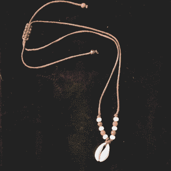 The necklace is crafted using a natural cowrie shell, wooden beads, and a waxed cotton cord. These materials are chosen for their durability, comfort, and eco-friendly qualities. - Is the necklace adjustable?