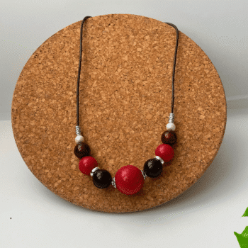 Made with recycled acrylic and glass beads, this necklace not only looks good but does good. The rich, contrasting colours of red and black beads, paired with natural wooden accents, create a versatile piece that seamlessly transitions from day to night. Whether you’re dressing up for a special occasion or adding a touch of flair to your everyday look, this cord necklace is the perfect choice.