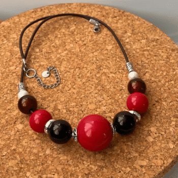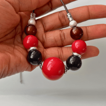 Yes, the bold red and black colours make this necklace versatile enough to be paired with both casual and formal outfits. It’s perfect for adding a pop of colour to any ensemble.
